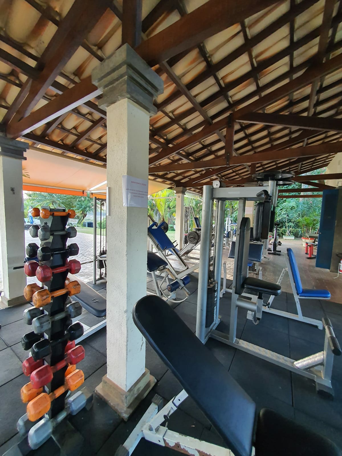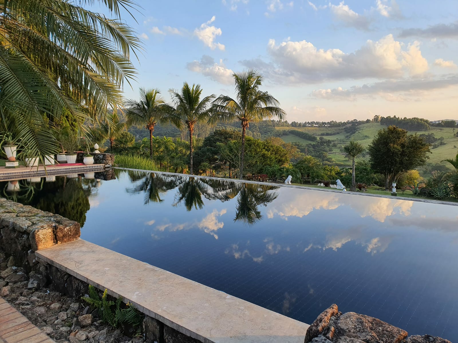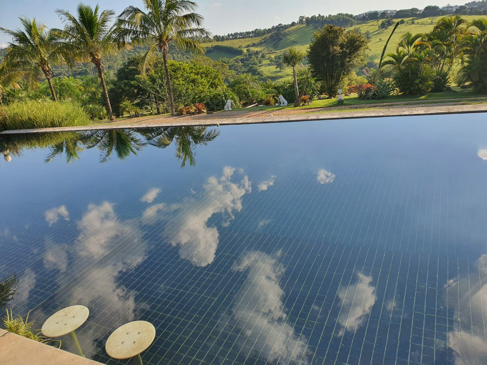 Ambientes equipados com piscina, academia, campo e quadra para esportes, refeitório, além de uma área ampla.